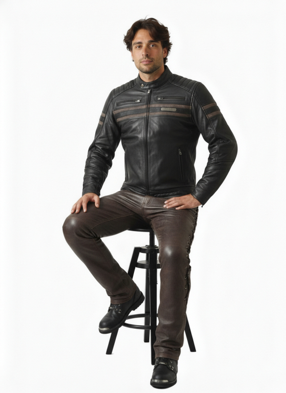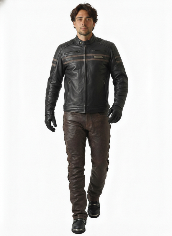 Luxusní pánská moto bunda Cruison Rideout Black je vyrobena z prémiové hovězí kůže nejvyšší jakosti. Černá hladká kůže s hnědým proužkem v kombinaci s robustními YKK zipy dodává bundě elegantní a nadčasový vzhled. Pohodlný střih a regulovatelné manžety v pase a na rukávech zajišťují komfortní nošení.