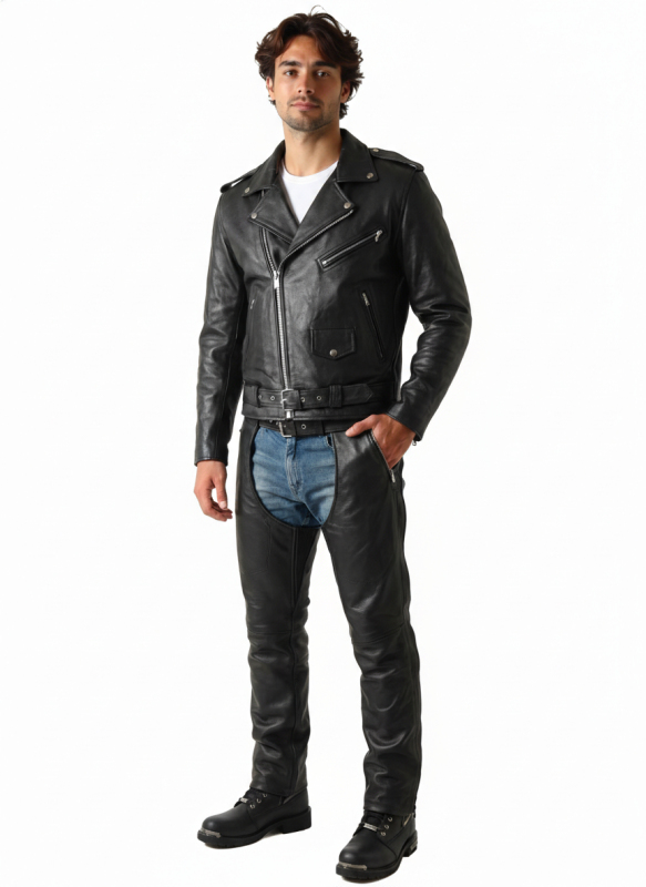 Chapsy Cruison Kingroad jsou vyrobeny z černé prémiové hovězí kůže nejvyšší jakosti. Nohavice lze rozepnout v celé délce pomocí kvalitních YKK zipů a druků. Pro volnější pohyb a lepší komfort jsou chapsy vybaveny elastickými manžetami na vnitřní straně stehen. Zadní zip umožňuje povolení nohavic, což ocení především nositelé se širšími stehny. Nohavice jsou podšity hladkou polyesterovou podšívkou. Na obou stranách jsou dvě hluboké kapsy – jedna na zip a druhá na druk. Pas lze nastavit pomocí předního pásku a zadního šněrování. Při výběru velikosti se orientujte především podle obvodu stehna v nejširším místě.