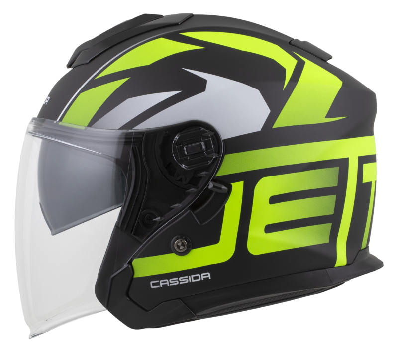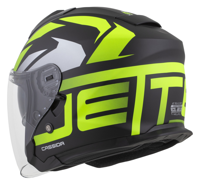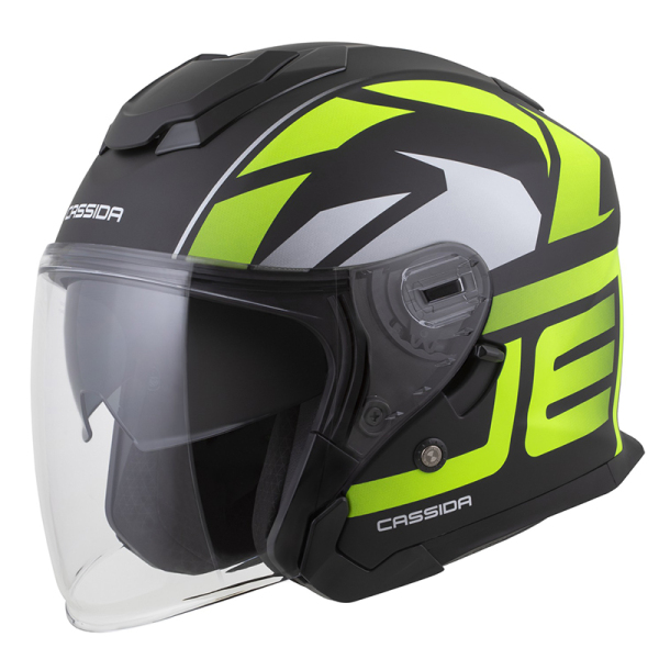Helma CASSIDA JET TECH 2.0 ROTO černá matná/žlutá fluo/bílá - otevřená přilba se sluneční clonou