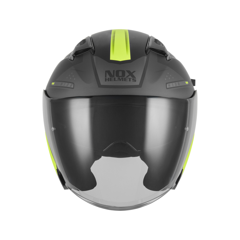 Helma NOX N130 EKTO černá matná/žlutá fluo - otevřená přilba se sluneční clonou
