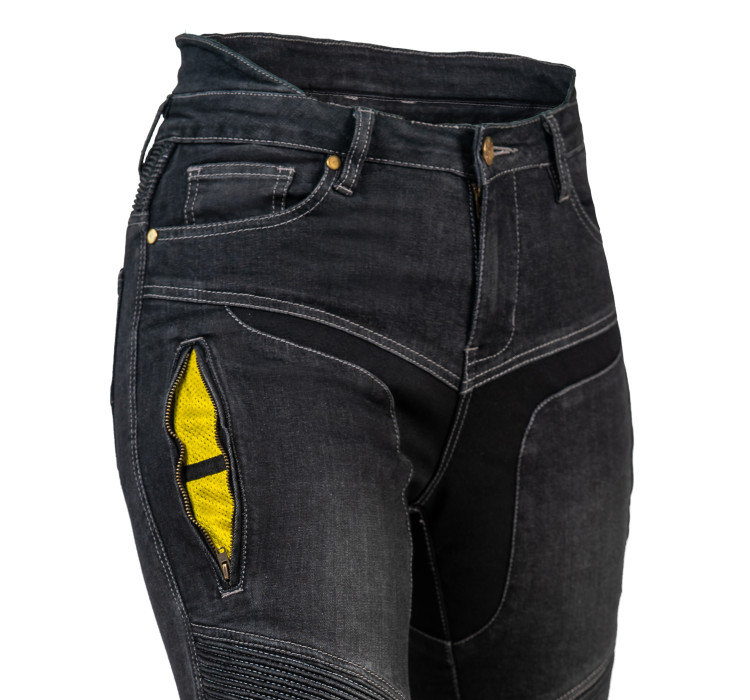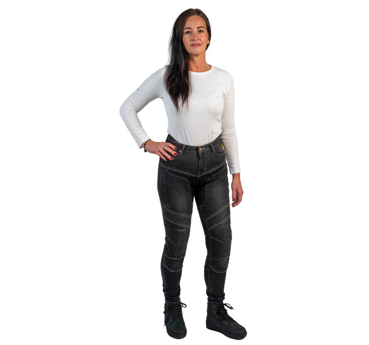 Motocyklové džíny vyrobené z kombinace materiálů Dyneema® a Denim, které přinášejí vysokou odolnost při zachování nízké hmotnosti a dobré prodyšnosti. Jednovrstvá konstrukce nabízí komfort podobný běžným džínům při jízdě na motocyklu.