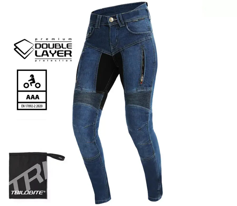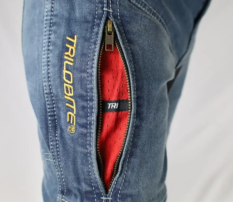Vlastnosti materiálu Tri-Stretcher® PRO 5.0 Denim Základní myšlenkou bylo vyvinout tkaninu, která bude vynikat pohodlím, bezpečností a zároveň splní náročné požadavky na střih, opotřebení, roztržení, otěruvzdornost a chemickou odolnost finálního výrobku při CE Certifikačních testech. Tri-Stretcher® PRO 5.0 Denim je speciální směsí Aramidu, Nylonu, Polyesteru, bavlny a Elastanu patentovaná společností Bikers Crown s.r.o., která je výhradním vlastníkem a materiálu a zároveň designérem motocyklových džínů Trilobite. Díky nedávným průlomům v oblasti syntetických vláken mohou být džíny pro jízdu na motocyklu lehčí než kdykoliv předtím.