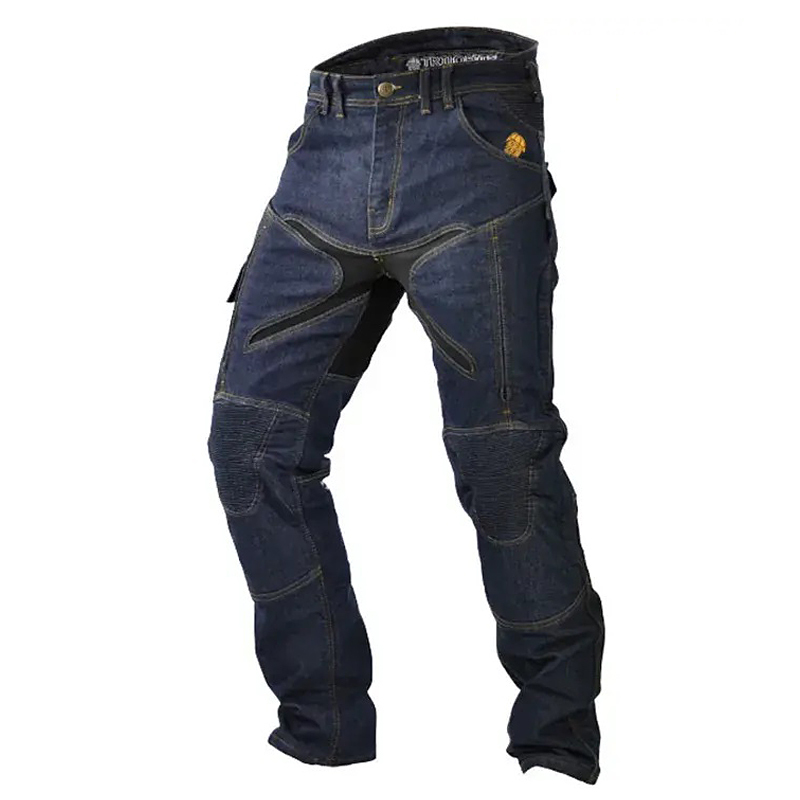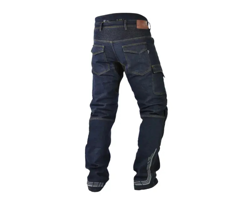 Džíny mají větrací kapsy na stehnech. Nylonové manžety zabraňují vnikání vody zespod nohavic během jízdy v dešti. Reflexní pruhy na lýtkách výrazně zvyšují viditelnost na silnici.