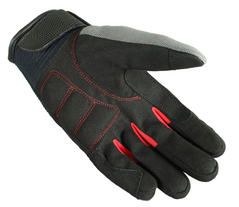 Kombinace odolného textilu a kožené dlaně zajišťuje dlouhou životnost, výbornou přilnavost a přesné ovládání motocyklu. Pružné části podporují volný pohyb prstů a přispívají k přirozenému pocitu při jízdě.