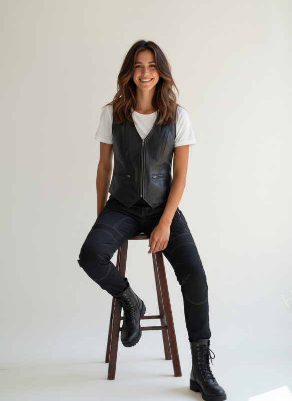 Oblíbená moto vesta Cruison Natty se zapínáním na zip, šitá z velmi kvalitní jemné kůže. Na přední straně jsou dvě klasické kapsy na zip, uvnitř dvě kapsy na druk.