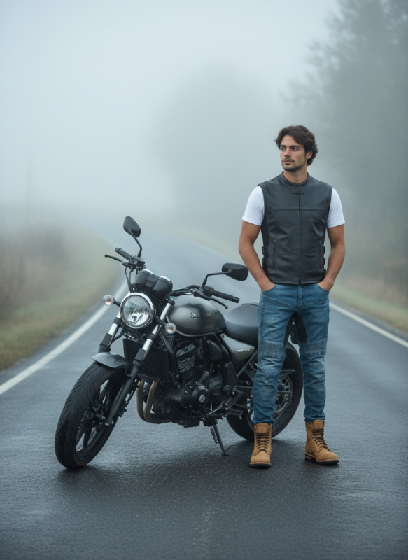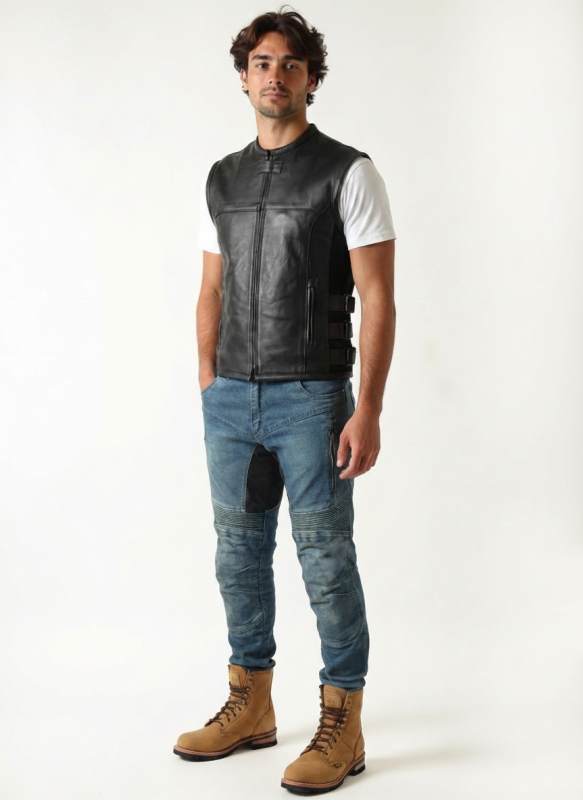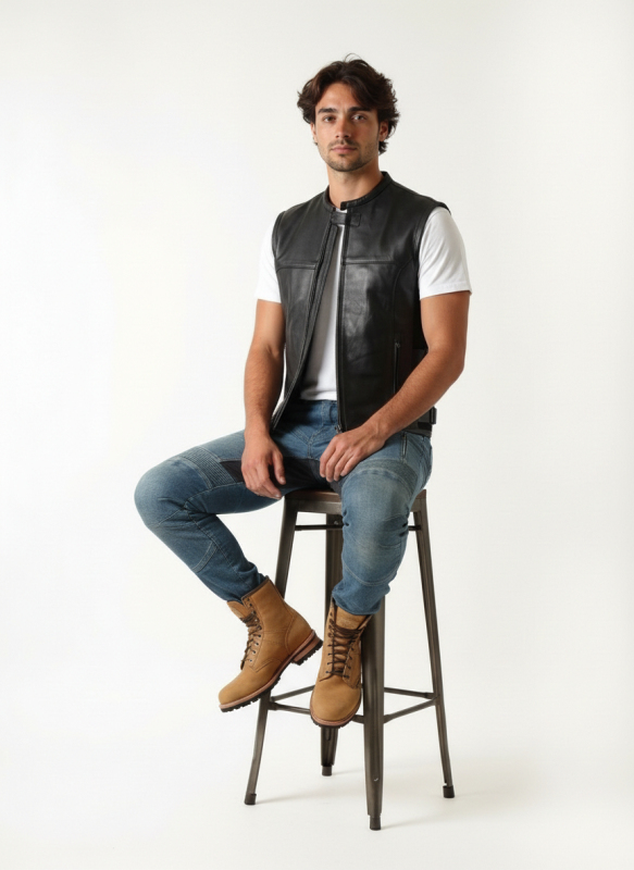 • kožená vesta v moderním moto stylu