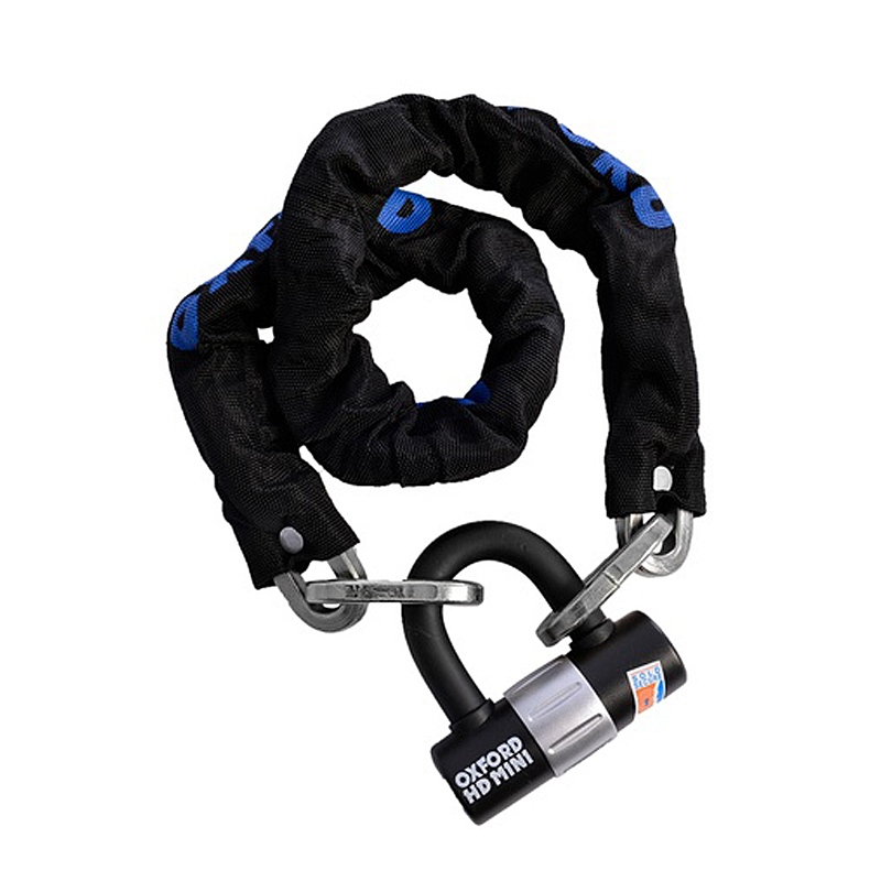 Řetězový zámek OXFORD HD o délce 1m patří do střední třídy zabezpečení v nabídce článkových zámků OXFORD a představuje ideální kompromis mezi vysokou odolností a dobrou skladností. Díky kompaktním rozměrům je snadno uložitelný do úložného prostoru motocyklu. Řetěz je tvořen články se čtvercovým průřezem o tloušťce 9,5mm, které zvyšují odolnost proti přeřezání. Součástí je zámek se systémem dvojitého kotvení, který lze v případě potřeby použít i samostatně jako kotoučový zámek. Textilní ochranný plášť chrání lak motocyklu před poškrábáním a protiprachová krytka prodlužuje životnost zámkové vložky. Zámek byl testován nezávislou zkušebnou Sold Secure a splňuje certifikaci ART 4114, což potvrzuje jeho vysokou úroveň zabezpečení.